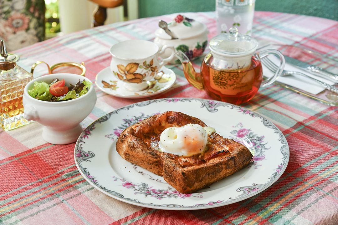 人気のフレンチトーストから着想を得たクロックマダム。ベシャメルソースは使わず、卵と牛乳に漬け込んだ食パンに、チーズとハムをのせて焼き上げている。そっと嚙みしめたいほどの、繊細なおいしさに感嘆。口に入れた瞬間、トッピングされたフェンネルの豊かな香りが広がり、食パンの優しい甘みを上品に引き立てる。ポーチドエッグは白身がふるふる、黄身がなめらか。ふわふわの食パンや、とろとろのチーズが一体になった、クロックマダムの柔らかな食感に、つい笑みがこぼれる。出来立ての温かいうちに、じっくり堪能して。