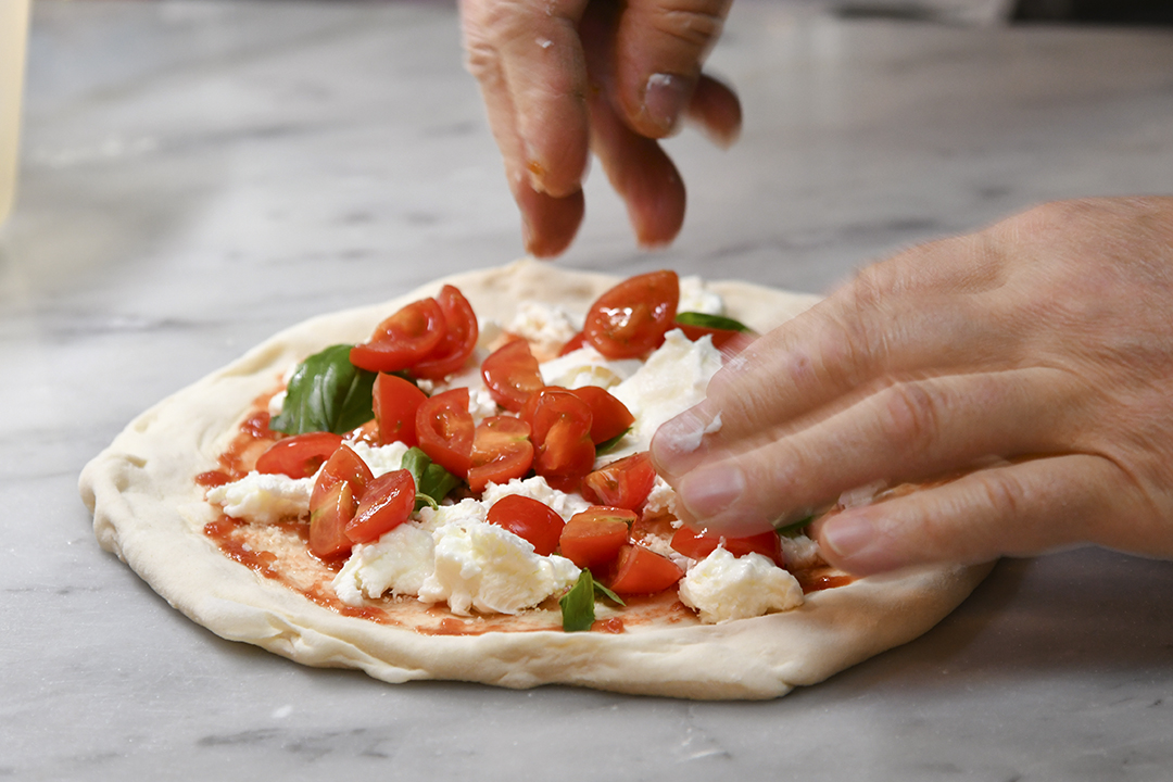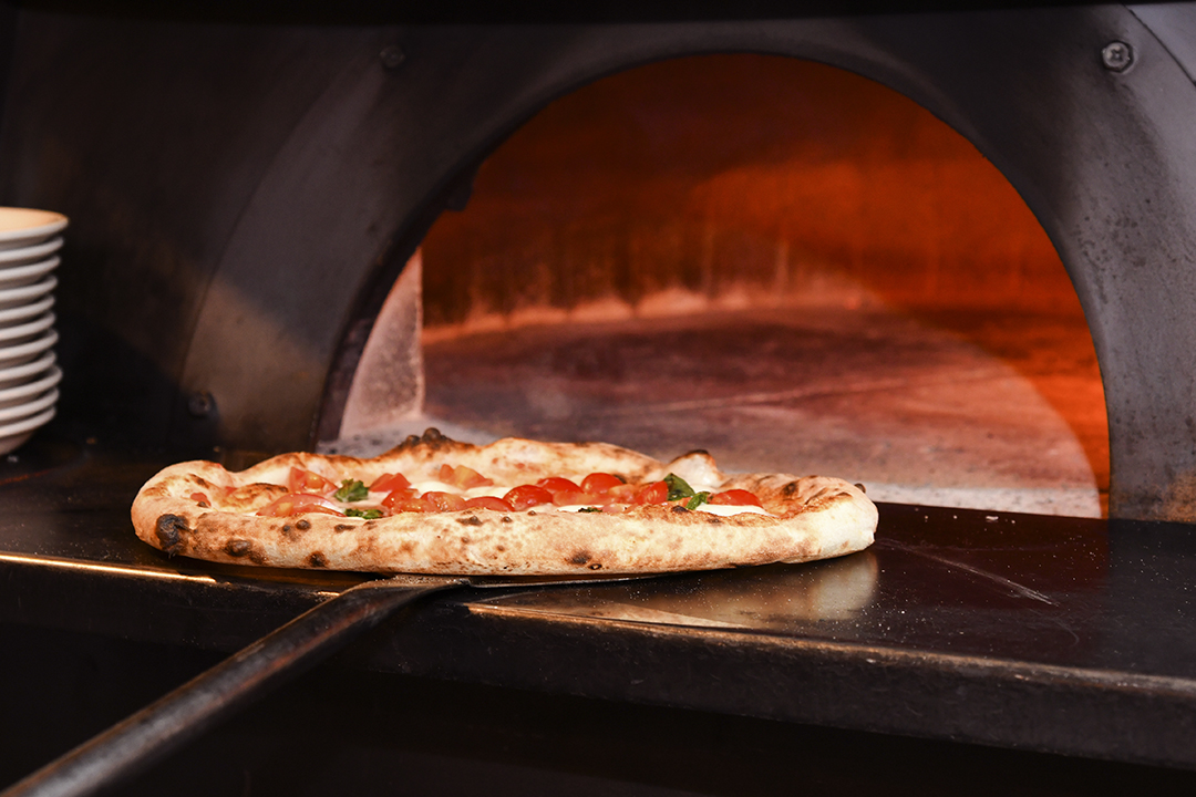 巧みな手さばきで焼き上げる、薪窯のピッツァ