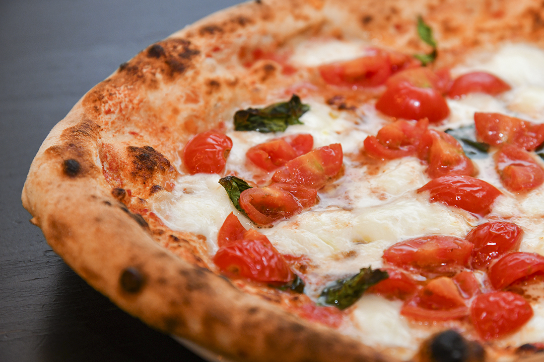 薪窯で一気に火入れ。チーズとトマトの定番マルゲリータD.O.C.