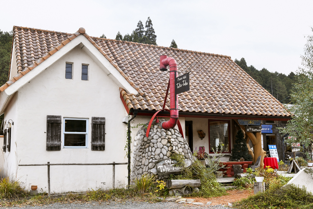 国道162号「周山街道」沿いに現れる、白い塗り壁にテラコッタ屋根瓦、そして赤い煙突が目印。ツーリングやドライブの休憩に立ち寄る人も多く、広い駐車場にはヨーロッパのクラシックカーやスポーツカー、レアなバイクがズラリと並ぶことも。