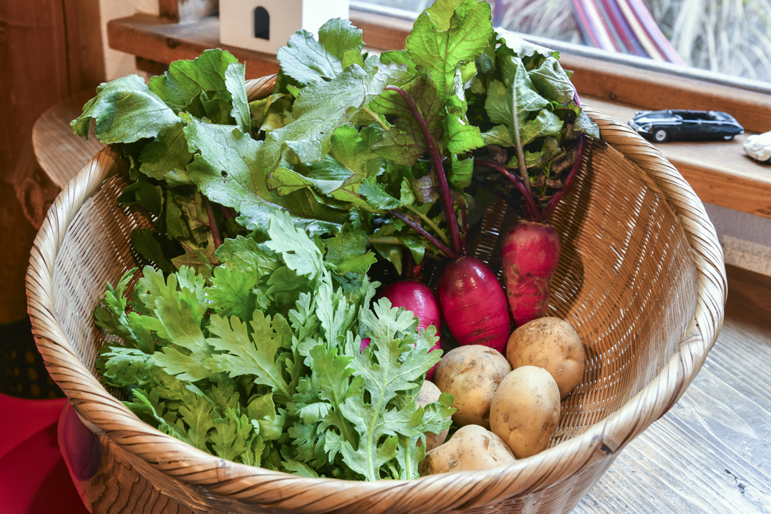 京北・西河農園の「電子CB農法」で育てられた無農薬野菜を使用