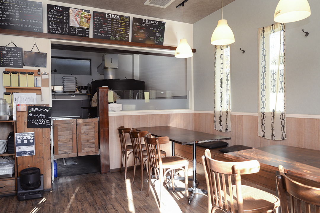 メニューにはトマト系・クリーム系・チーズ系がバランス良く揃い、季節替わりのピッツァも用意。鶏肉やキノコなど幅広いトッピングを使い、洋風や和風の多彩なピッツァを展開している。店内には4人掛けと6人掛けのテーブルがあり、大人数でシェアしながら楽しめるのもポイント。店主の人柄がにじむ、地元に寄り添う穏やかな空間で、個性豊かなピッツァをぜひ。