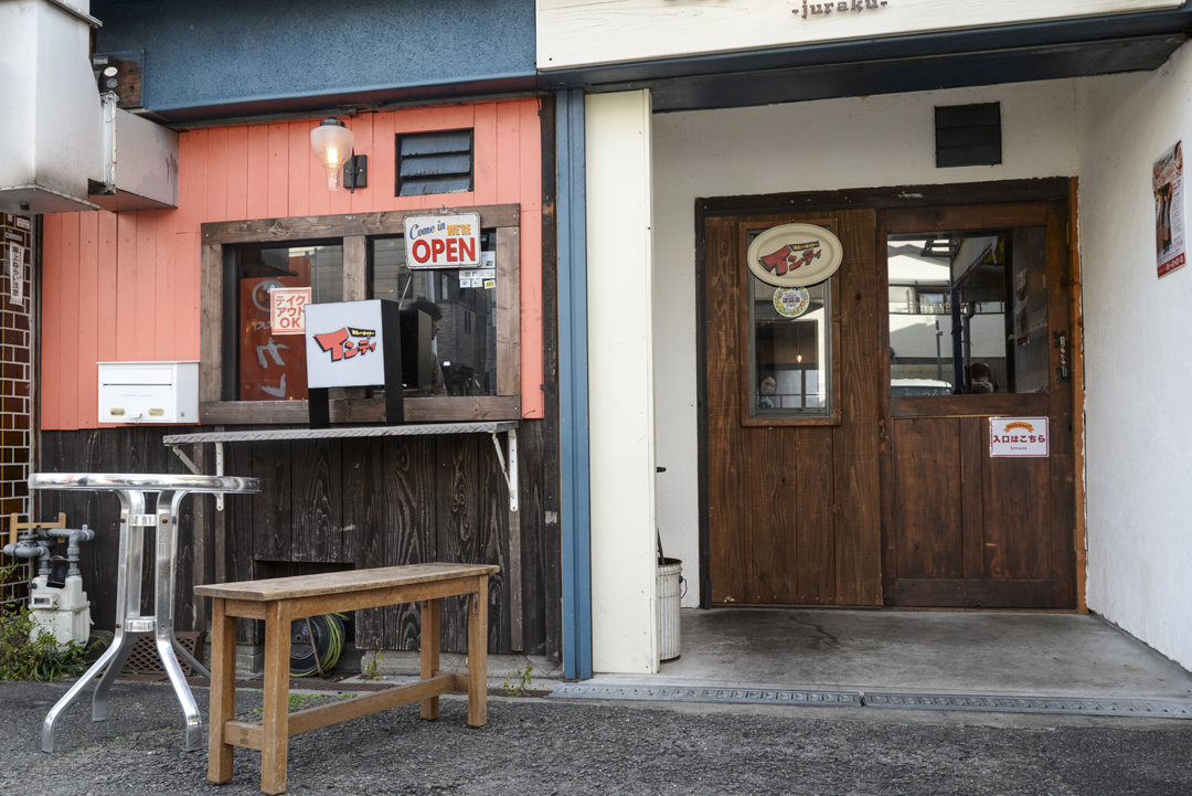 テイクアウトの利用もOK。周辺はローカルな風情が漂う住宅街。漬け物店や精肉店、電気店、餅菓子店などの小さな店が立ち並ぶ商店街になっている。