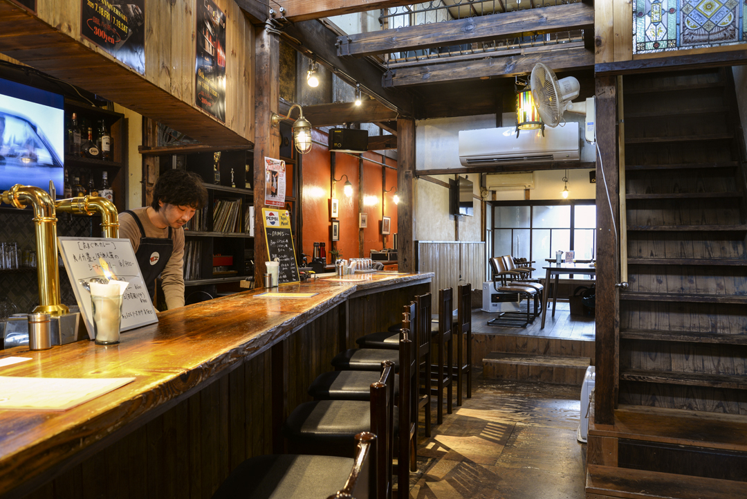 古民家を改装した店内は、土間の吹き抜けの窓から光が差し込み、開放的な雰囲気。カウンター席のほか、テーブル席もあり人数問わず利用できる。