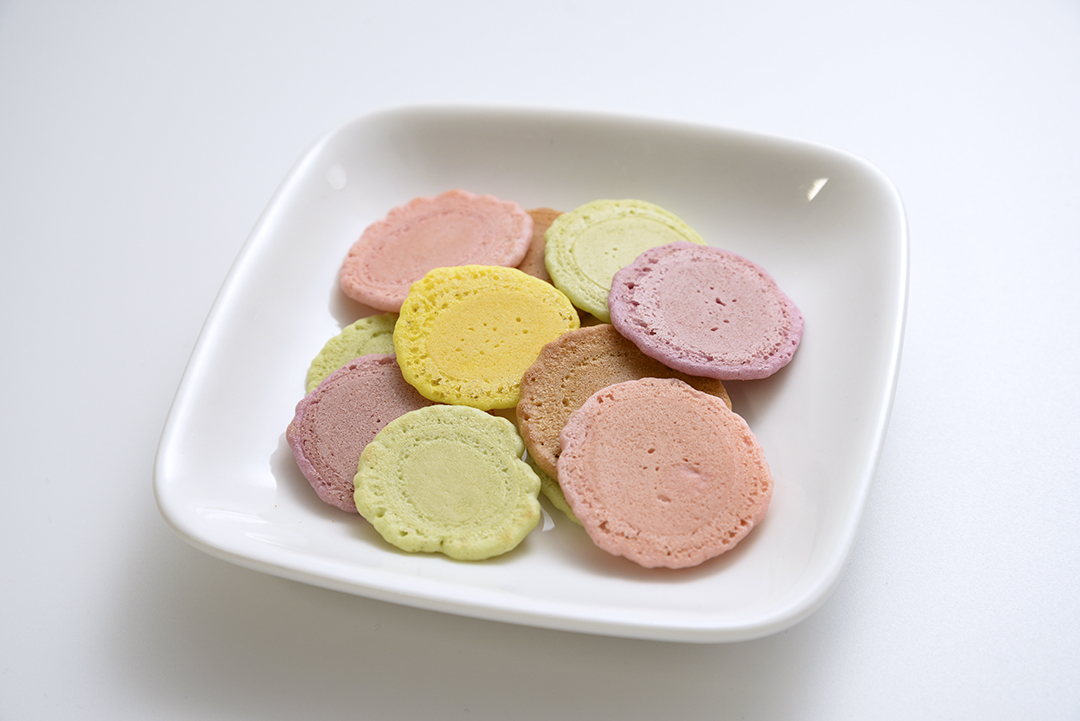 昭和22年から続く、西陣の京せんべい専門店。国産の小麦粉で作る京せんべいをバリエーション豊かに揃え、幅広い世代に愛されている。小粒タイプの「iroiro菓」は、さつまいも味やラズベリー味など、ほんのり甘いカラフルな京せんべいが楽しめるシリーズ。箱入りの「iroiro菓 ~みやび~」(12種類または6種類)のほか、1種類から購入できる。