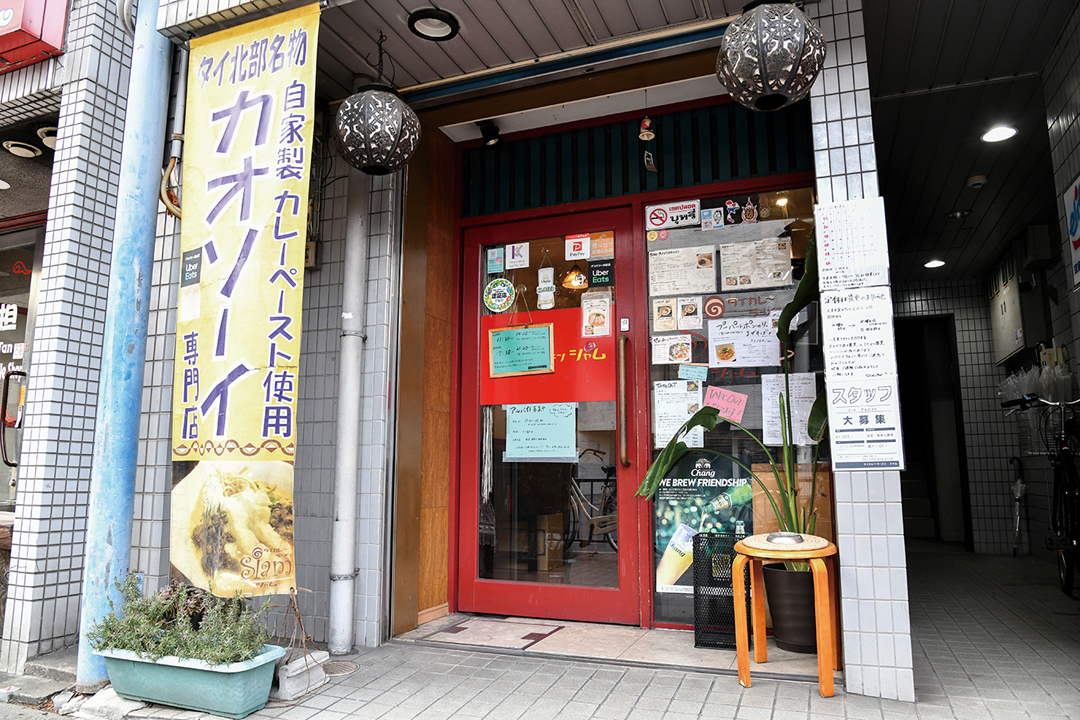 カオソーイとはタイ北部で食べられている麺料理。ココナッツミルク入りのレッドカレーペーストに中華麺を入れ、さらに揚げ麺をのせた、いわば“タイカレーラーメン”。こちらでは、自家製カレーペーストにより本場に近い味を再現。「レッドカレースープ」「グリーンカレースープ」「マッサマンスープ」のなかからスープが選べる。中華麺や高菜など、日本人にも馴染みのある食材が使われているので、タイ料理が初めての人でもとっつきやすい味わい。