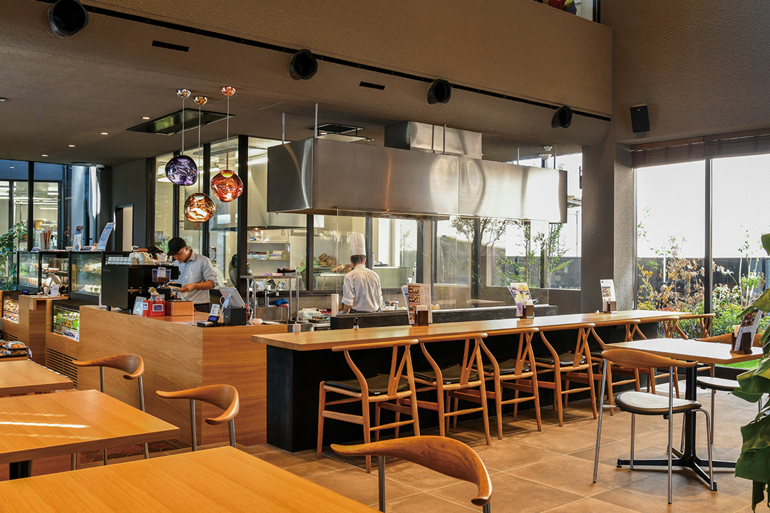 養鶏産業を手掛けて90年になる「株式会社ヤマモト」が、「丹波山本」ブランドの魅力を地元で発信したいと今年7月、「丹波山本亀岡本店」をオープン。店内のレストラン「鶏と亀」ではその名の通り、自慢のブランド鶏と亀岡の素材を主役にしたメニューを取り揃える。「丹波黒どり」胸肉のしっとりとして絹のような肉質に感動!深い旨みに思わず瞼をとじて味わいたくなる。米なども亀岡産。地鶏丹波黒どりと季節野菜のせいろ蒸し(1,200円)スペシャリティコーヒーカフェラテセット(+350円)、京都ファーブルトン(280円)