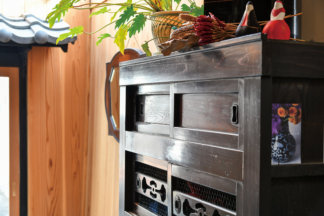 広々とした店内は梁や柱をそのまま残し、昔ながらの風情が漂う。梁や柱とマッチする濃い色の木製家具や、作家の個性が光るインテリアは店主が選んだもの。どれも温かみを感じる落ち着いたデザインで、思わず細部までじっくり見てしまう。BGMにジャズが流れ、中庭の緑が窓一面に望める店内で、日常を忘れてリフレッシュできそう。